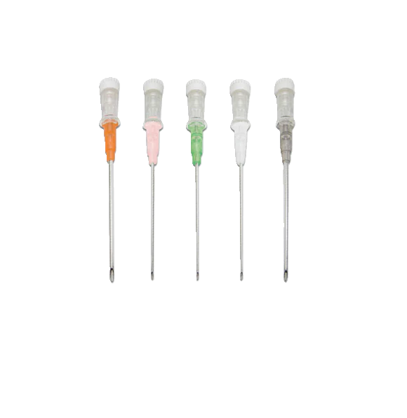 Ago da tripla affilatura, catetere lubrificato per facilitare l’inserimento.