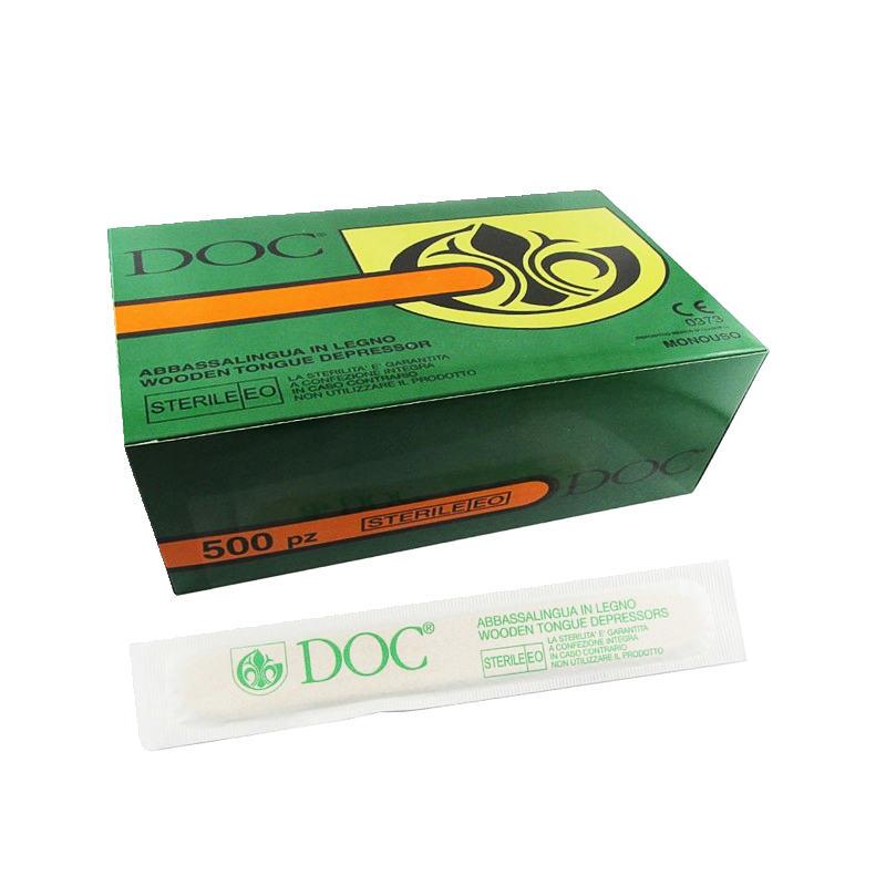 Abbassalingua in legno monouso confezionati in blinster sterili.
