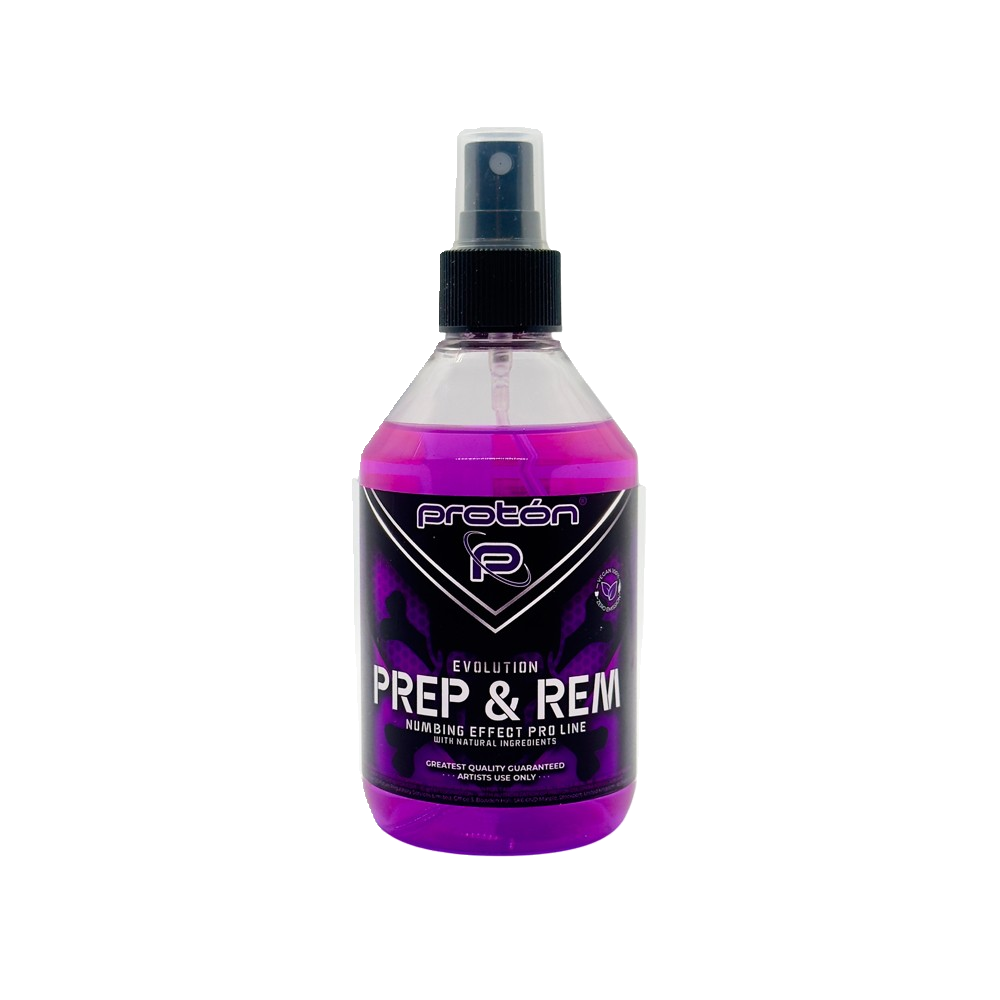 Evolution Proton Stencil Prep & Rem non si limita a rimuovere lo stencil ma prepara anche la pelle all’azione. La sua formula antibatterica elimina il 99% dei batteri lasciando una pelle pulita e sicura su cui lavorare. Contiene inoltre ingredienti bioattivi che offrono un effetto anestetco rendendo le sessioni di tatuaggio più confortevoli per i clienti.